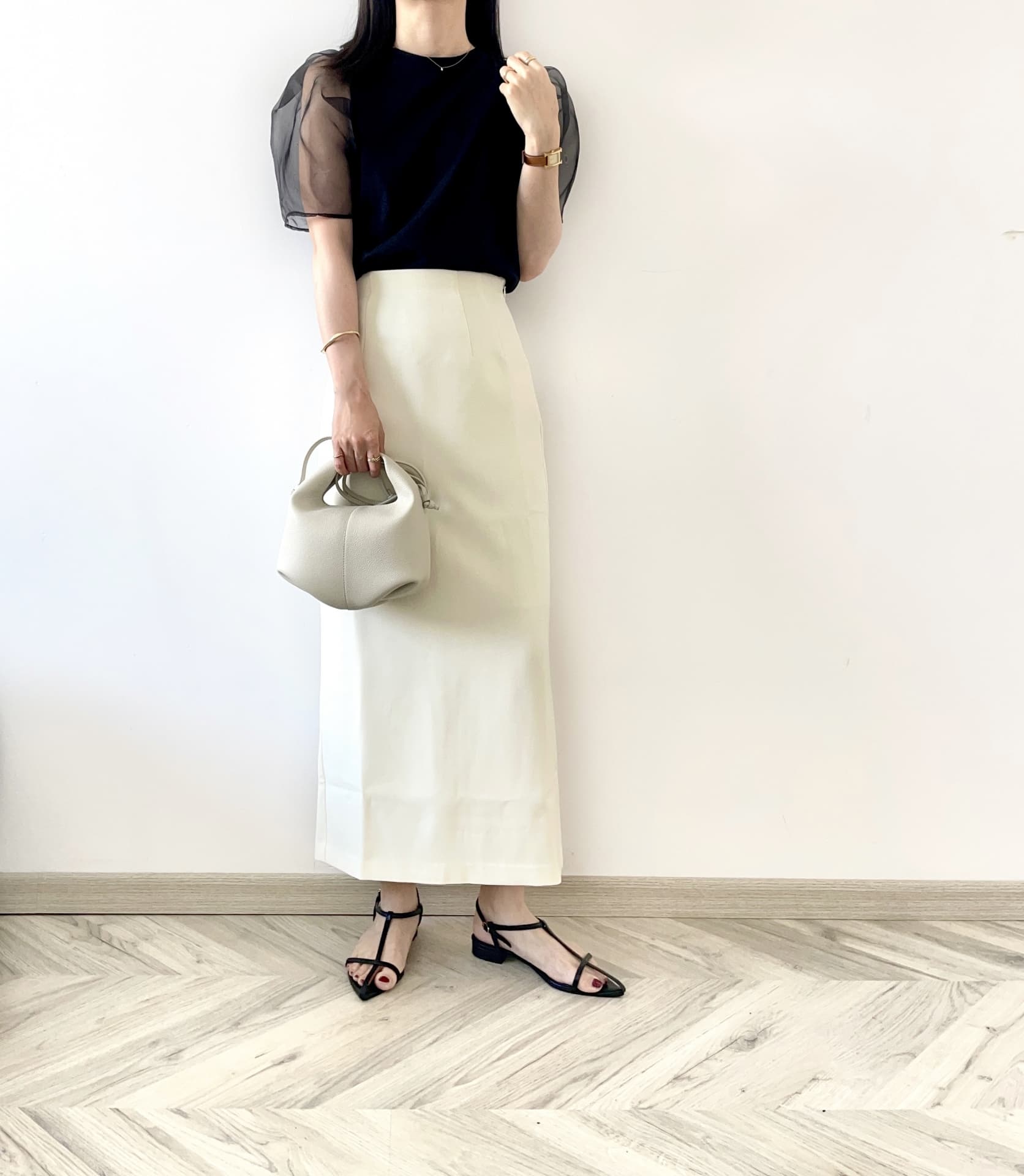 - **バッグのサイズ感**:小さめバッグは軽やかに、ショルダーやトートは縦ラインを意識するとシルエット美が強調されます。